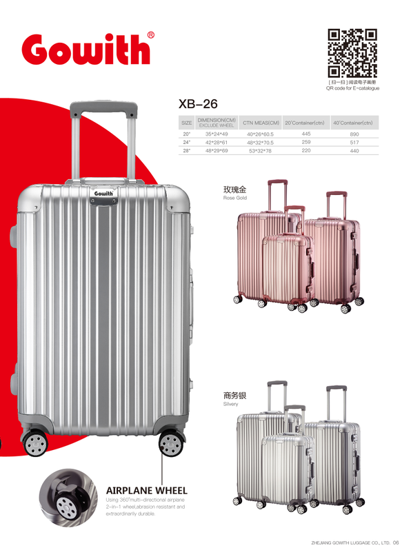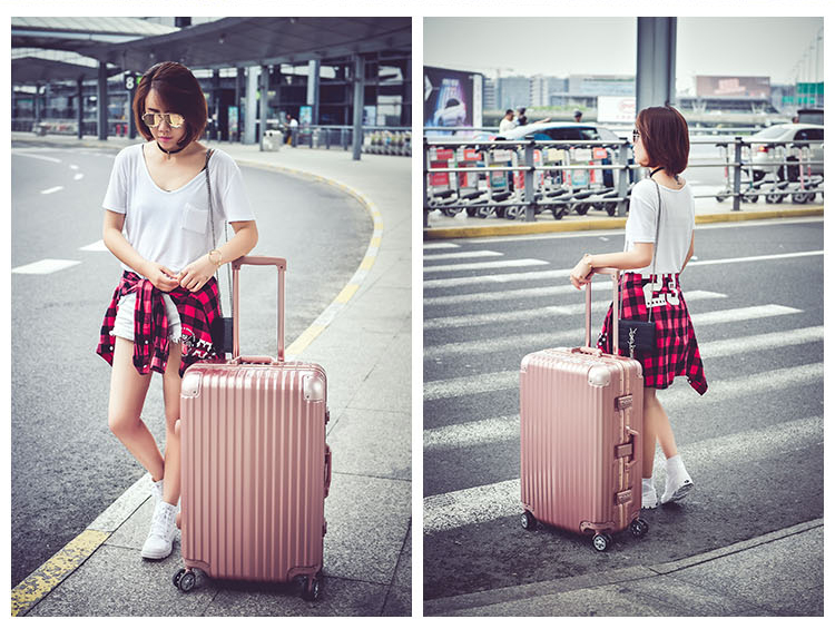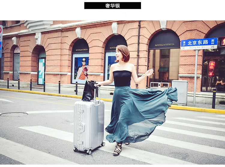 名稱:鋁框箱 型號(hào):XB-26 尺寸:20英寸 35*24*49cm 24英寸 42*28*61cm 28英寸 48*29*69cm 材質(zhì):PC+ABS 鋁合金 顏色:商務(wù)銀 /玫瑰金